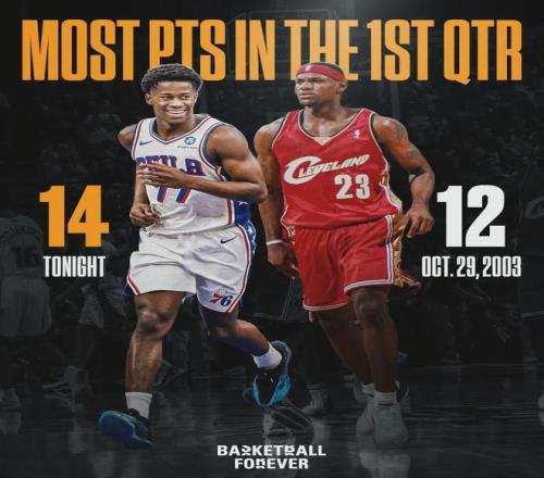 随后的半节他命中3记三分加一记上篮,首节砍下14分,打破了由勒布朗-詹姆斯保持了22年之久的生涯首秀单节得分纪录(12分)。