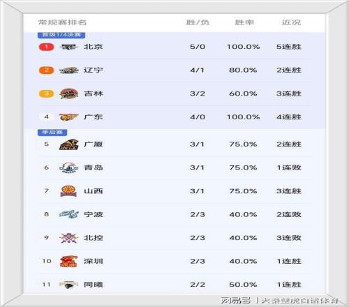 ②、辽宁队4胜1负拿到2连胜,排名暂时升至第2位;